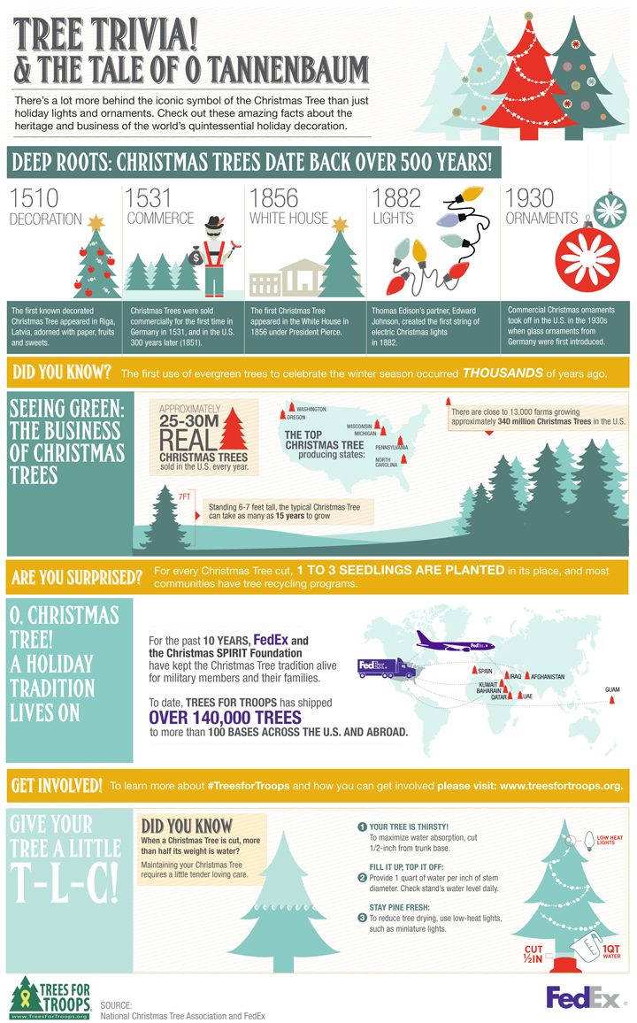 Get Involved: For the past 10 years, the Christmas SPIRIT Foundation and FedEx have kept the Christmas Tree tradition alive for military members and families through the Trees for Troops program; learn how you can get involved at TreesForTroops.org.