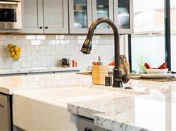 In one of the kitchens, Responsive Home Creative Director Bobby Berk paired a white farmhouse sink with a Danze pull-down faucet in a tumbled bronze finish. The juxtaposition of mixing and matching elements such as these are at the heart of millennial style.