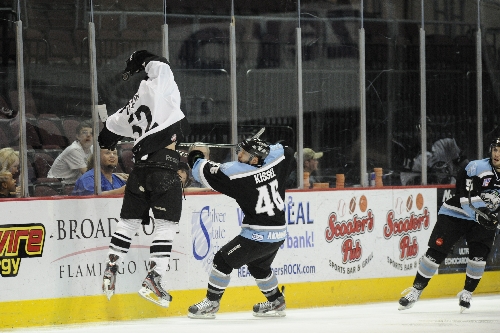 Campbell tied it 1-1 for Las Vegas with 2:31 left in the second period. Adam Miller and Ryan Weston assisted, with Miller dropping a pass in the slot for Campbell, who buried it for his team-leading fifth playoff goal.
