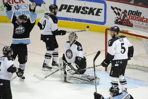Ryan Cruthers scored both goals for the Aces, netting the game winner on a deflection with 4:06 left. Defenseman Tyson Marsh set up the score, grabbing the puck out of the air with his glove at the high slot, then quickly dropping it on the ice and firing it on net.
