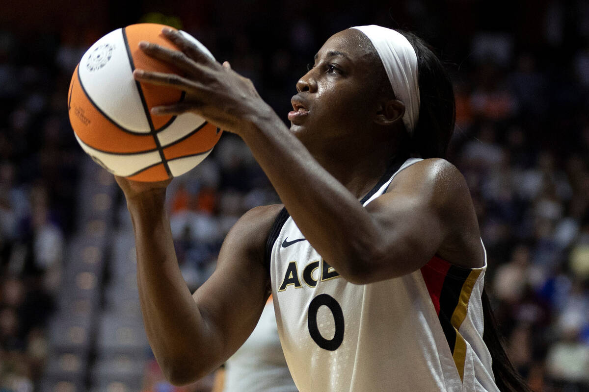UNCASVILLE, Conn. — Aces All-Star wing Jackie Young was all alone in the left corner. With 7:16 remaining in the third quarter and her team trailing the Connecticut Sun 60-44 in Game 3 of the WNBA Finals, Young received a pass from teammate Kelsey Plum.