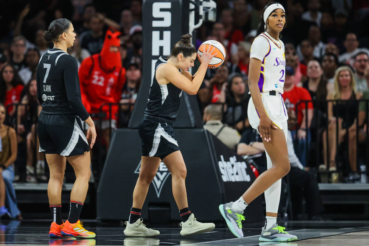 Both were overshadowed by a larger story surrounding the Aces’ 87-71 win over the Los Angeles Sparks on Sunday at Michelob Ultra Arena. So much so that coach Becky Hammon felt the need to offer some “facts” in her postgame news conference.