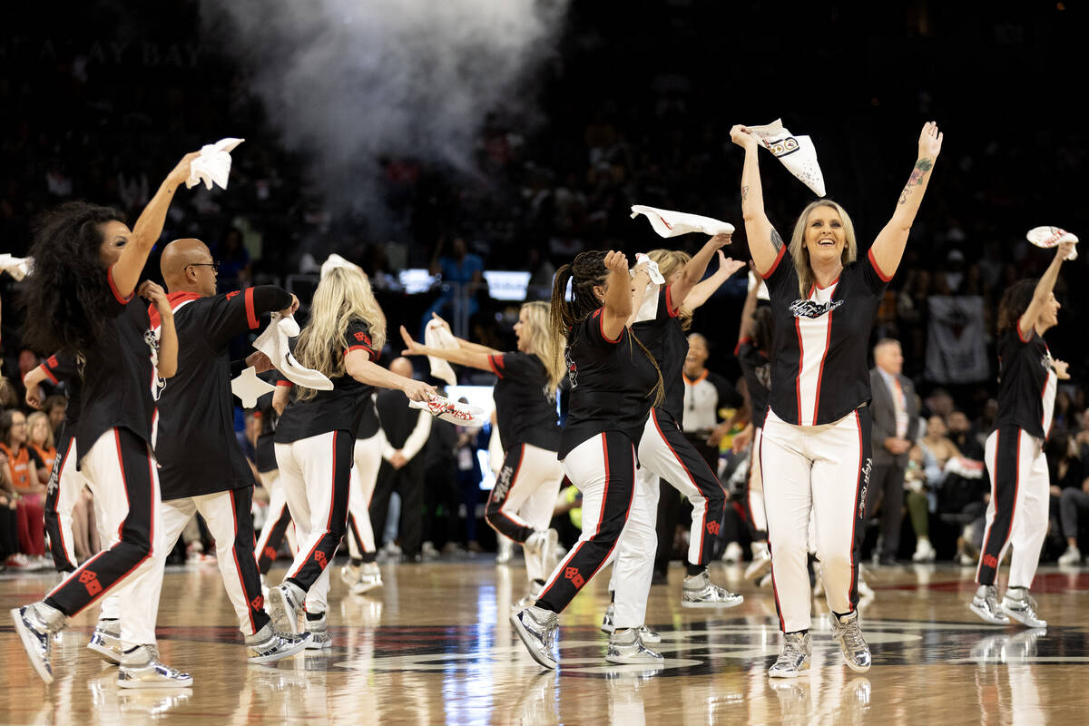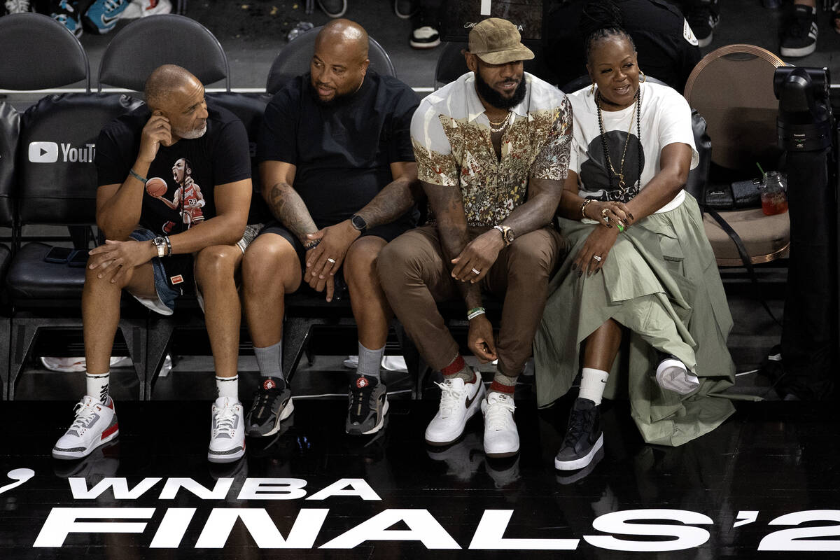 A crowd of 10,300 attended the game, including NBA superstar LeBron James, former NFL quarterback and Aces minority owner Tom Brady, WNBA legend Sheryl Swoopes and assembled members of the Brooklyn Nets, who play James and the Los Angeles Lakers at 6 p.m. Monday at T-Mobile Arena.