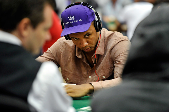 Phil Ivey, who won his 10th WSOP bracelet last month and was seated in one of the outer rooms, bounced back after taking an early hit and had a healthy chip stack at the break. Phil Hellmuth made a quiet entrance after the dinner break, shooting a few baskets on a basketball hoop outside of the Rio before taking his seat.