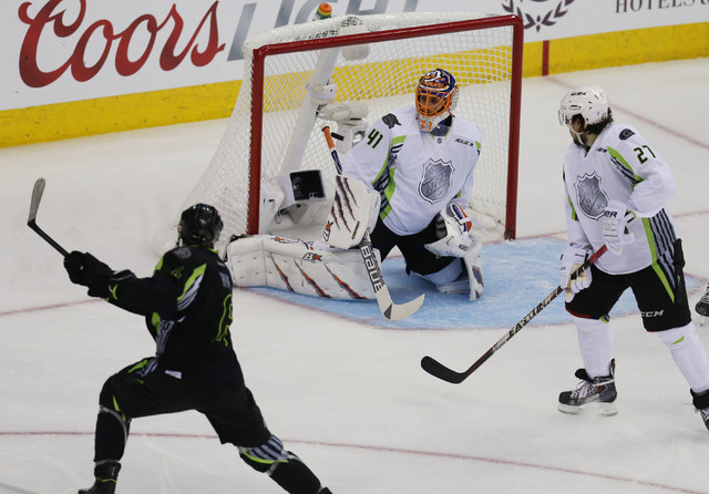 Pittsburgh goaltender Marc-Andre Fleury stopped only 9 of 16 shots in the second period for Team Foligno. The seven goals allowed in one period is an All-Star Game record.