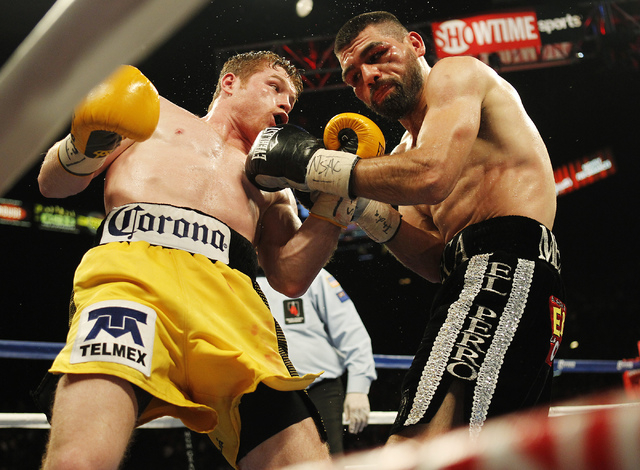 The punch, a huge left to Alfredo Angulo’s chin just seconds into Saturday’s junior middleweight fight at the MGM Grand Garden, sent a clear message. Alvarez was not going to suffer any kind of a letdown after the beatdown Mayweather administered to him in handing Alvarez his lone defeat. He pummeled Angulo from start to finish, winning by technical knockout 47 seconds into the 10th round after referee Tony Weeks stopped the fight.