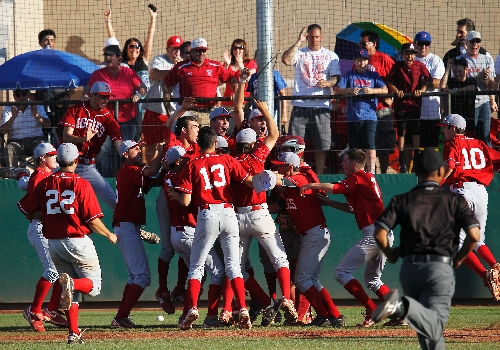 ■ Green Valley 10, Sunrise Mountain 2 - At Green Valley, Evan Van Hoosier was 3-for-4 with two doubles and three RBIs as the Gators eliminated the Miners (10-15).