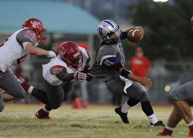 No. 8 Canyon Springs (1-0) capitalized on one of several Cheyenne mistakes when Greg Banks returned a fumble for a 91-yard TD to seal the win late in the third. Bradley Alexander completed 7 of 17 pases for the Pioneers.