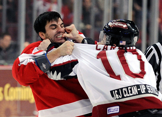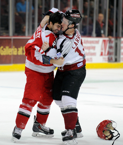 Incredibly, Hughesman played the past six seasons with a torn anterior cruciate ligament in his knee. Doctors didn’t discover the injury until after Hughesman’s knee gave out on him in Game 1 of Las Vegas’ first-round ECHL playoff series against Stockton, which won in seven games.