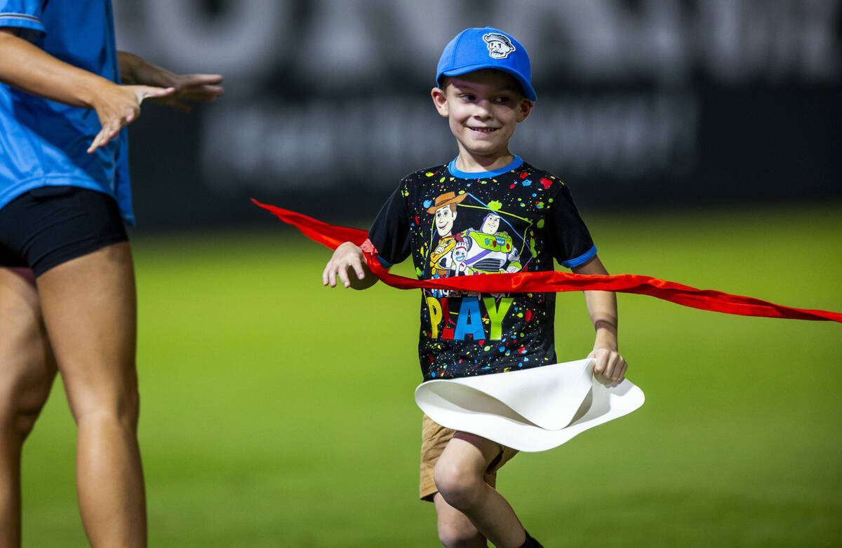 A young boy crosses the finish line in a race as the Aviators battle the El Paso Chihuahuas during their baseball game at the Las Vegas Ballpark on Tuesday, Sept. 17, 2024, in Las Vegas. (L.E. Baskow/Las Vegas Review-Journal) @Left_Eye_Images