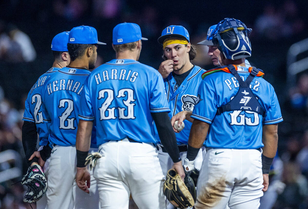 Aviators manager Fran Riordan decides to retire his pitcher as they battle the El Paso Chihuahuas during their baseball game at the Las Vegas Ballpark on Tuesday, Sept. 17, 2024, in Las Vegas. (L.E. Baskow/Las Vegas Review-Journal) @Left_Eye_Images