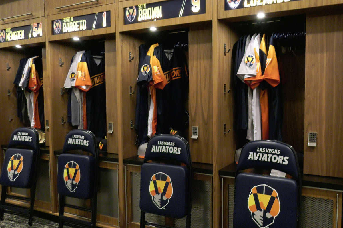 The Las Vegas Aviators’ locker room at Las Vegas Ballpark in Las Vegas on Thursday, July 16, 2020. (Cassie Soto/Las Vegas Review-Journal)