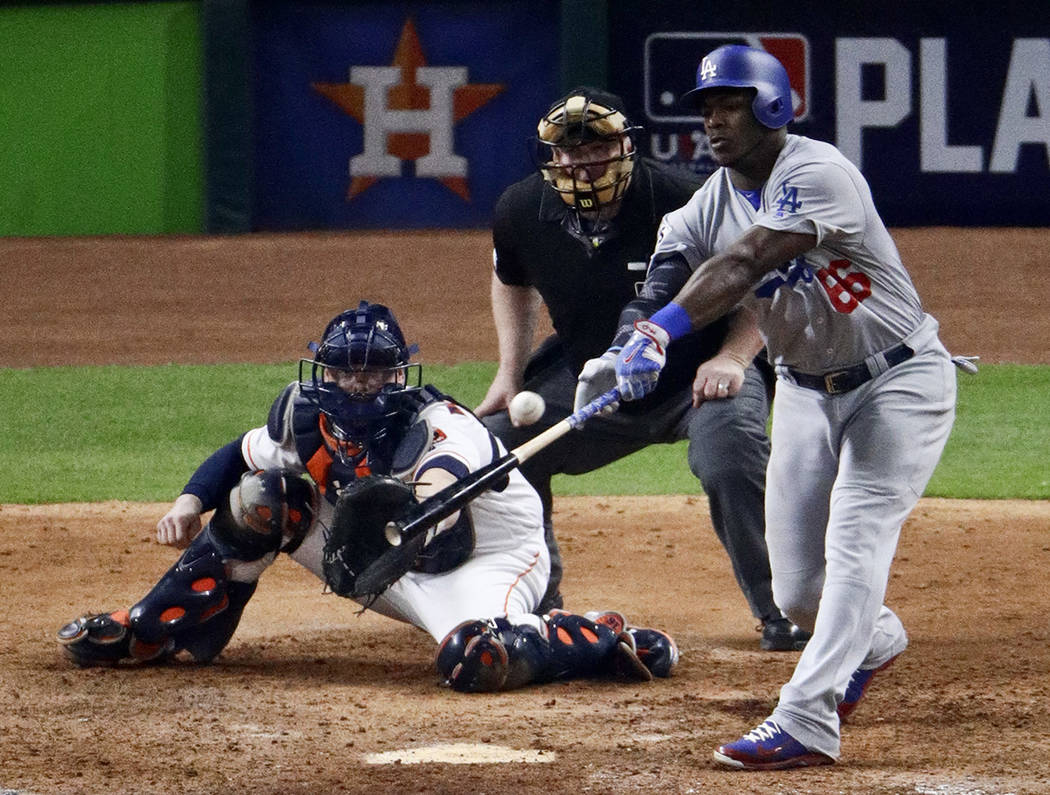 Puig lined a two-run shot in the ninth, the record 22nd homer in a single Series, and Chris Taylor’s two-out single off Chris Devenski tied it.