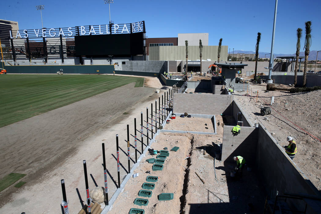 Construction continues on the home and visitor bull pens at Las Vegas Ballpark Thursday, March 14, 2019. (K.M. Cannon/Las Vegas Review-Journal) @KMCannonPhoto