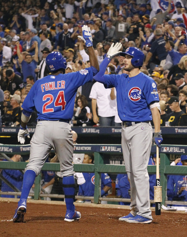 Fowler, who went 3-for-4, became the first Cubs player to have at least three runs and three hits while hitting a home run and stealing a base in a postseason game. Schwarber went 2-for-3 with three RBIs.