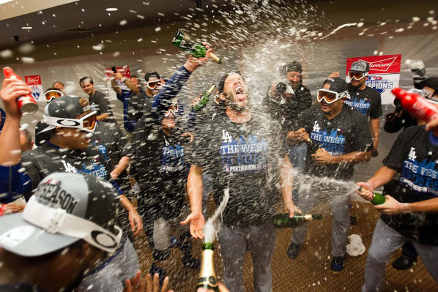 SAN FRANCISCO -- The Los Angeles Dodgers clinched the National League West title Tuesday night, riding the one-hit shutout pitching of left-hander Clayton Kershaw to an 8-0 victory over the San Francisco Giants.