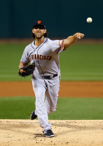 San Francisco Giants left-hander Madison Bumgarner set a major league record for pitching the most consecutive scoreless innings on the road in postseason play, extending his string to 24 on Saturday night.