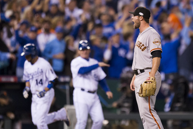 Strickland caused the benches to clear Wednesday night when he shouted at Kansas City’s Salvador Perez after allowing a two-run homer in the sixth inning to Omar Infante in San Francisco’s 7-2 loss.