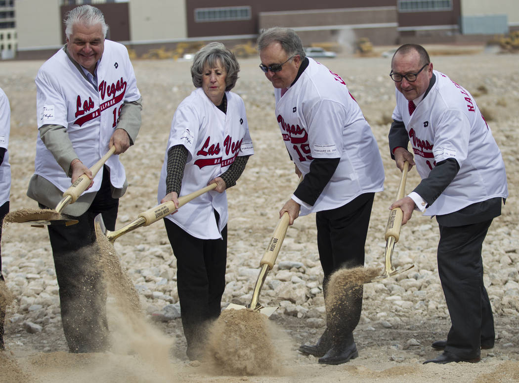 Heavy clouds and chilly weather did nothing to dampen the enthusiasm Friday as officials with golden shovels with baseball bat handles turned dirt following a half-hour ceremony in Summerlin.