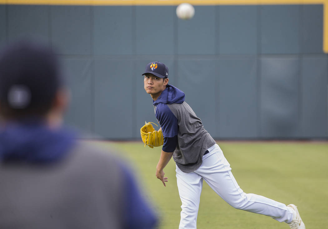 Aviators players warm up before the start of practice during media day at Las Vegas Ballpark on Tuesday, April 2, 2019, in Las Vegas. (Benjamin Hager Review-Journal) @BenjaminHphoto