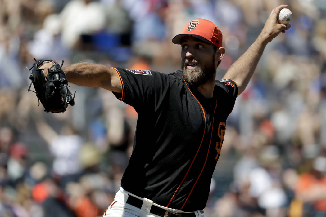 SCOTTSDALE, Ariz. — San Francisco Giants left-hander Madison Bumgarner is hurt for the second straight year, breaking a bone in his pitching hand when hit by a line drive off the bat of Kansas City’s Whit Merrifield during a spring training game on Friday.