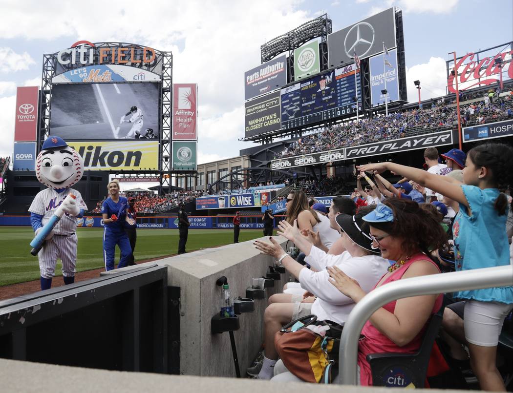 “I love you, Mr. Met!” a couple kids called out as the popular mascot bounded to his pregame perch beyond the distant outfield seats. He got more cheers in the sixth inning, when he launched souvenirs along the first base side.