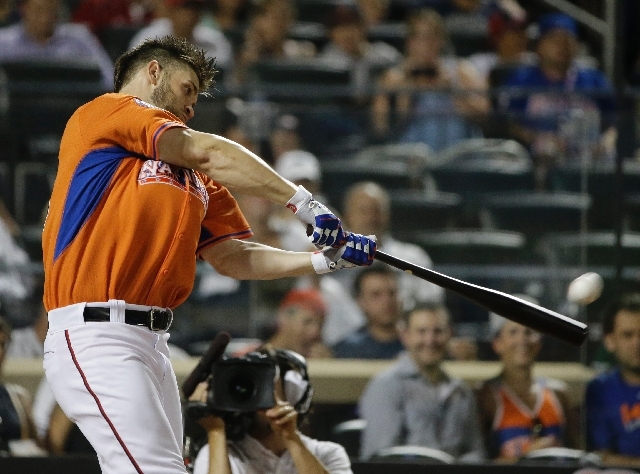 The Oakland Athletics slugger beat Bryce Harper 9-8 in the final round Monday night at reconfigured Citi Field, hitting the decisive drive with five swings to spare.