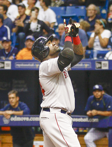 Ortiz belted a 2-2 pitch from Tampa Bay left-hander Matt Moore well into the right-field seats in the fifth inning for his second home run of the game and 34th of the season to give Boston an 8-0 lead.