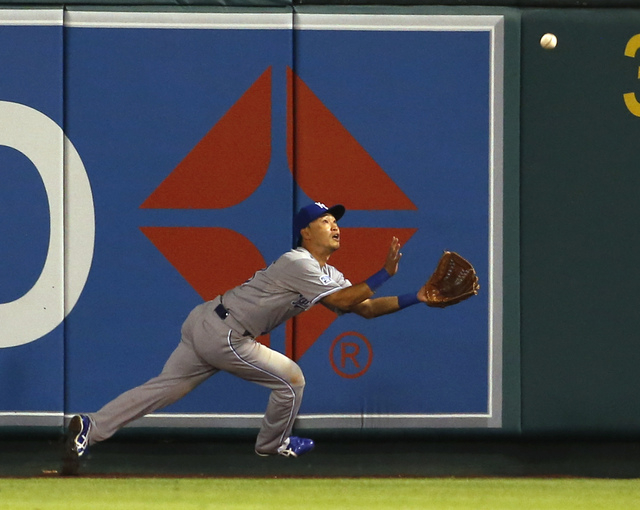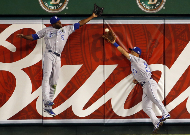 The Angels put two runners on against a tiring Vargas in the sixth, and Royals fans might have had bitter flashbacks to manager Ned Yost’s much-debated, sixth-inning pitching decisions in the wild-card game. But Aoki saved Kansas City when he blindly nabbed Howie Kendrick’s drive to the warning track in right.