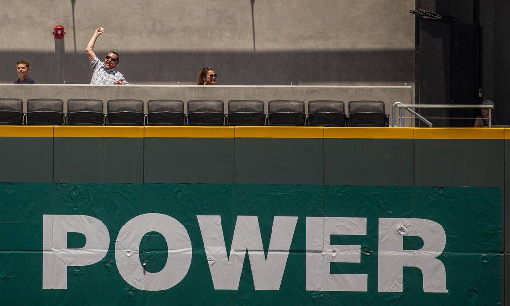 An Aviators fan shows off the ball he snagged which was hit over the wall in center field during a game versus the Tacoma Rainiers at the Las Vegas Ballpark on Sunday, May 12, 2019 in Las Vegas. (L.E. Baskow/Las Vegas Review-Journal) @Left_Eye_Images