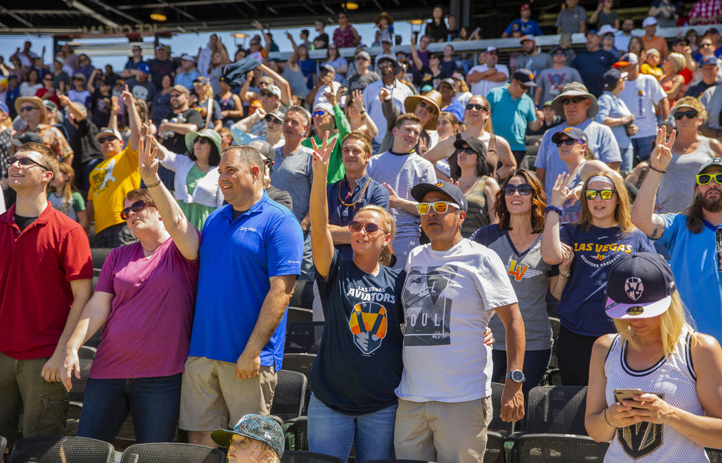 Aviators fans sing "take Me Out to the Ballpark" during a break in the game versus the Tacoma Rainiers at the Las Vegas Ballpark on Sunday, May 12, 2019 in Las Vegas. (L.E. Baskow/Las Vegas Review-Journal) @Left_Eye_Images