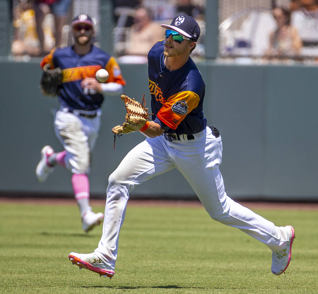 The Aviators Skye Bolt (8) readies to catch a ball short in right field hit by the Tacoma Rainiers at the Las Vegas Ballpark on Sunday, May 12, 2019 in Las Vegas. (L.E. Baskow/Las Vegas Review-Journal) @Left_Eye_Images