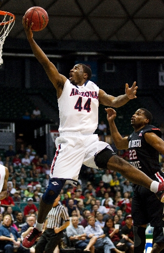 Solomon Hill, voted the tournament Most Valuable Player, kept Arizona in the game by scoring 21 points and holding Jamaal Franklin to nine, ending his streak of 32 straight games in double figures. With the game tied at 66, Franklin was fouled on a drive with 31 seconds left, but missed one of two free throws.