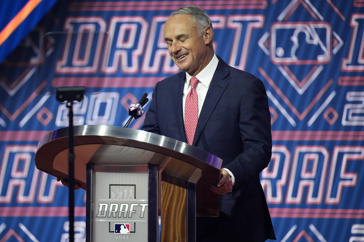 With progress toward a new ballpark in the Bay Area hinging on a Oakland City Council vote next week, Major League Baseball Commissioner Rob Manfred upped the ante Tuesday, saying Las Vegas is a real option for the team’s future.