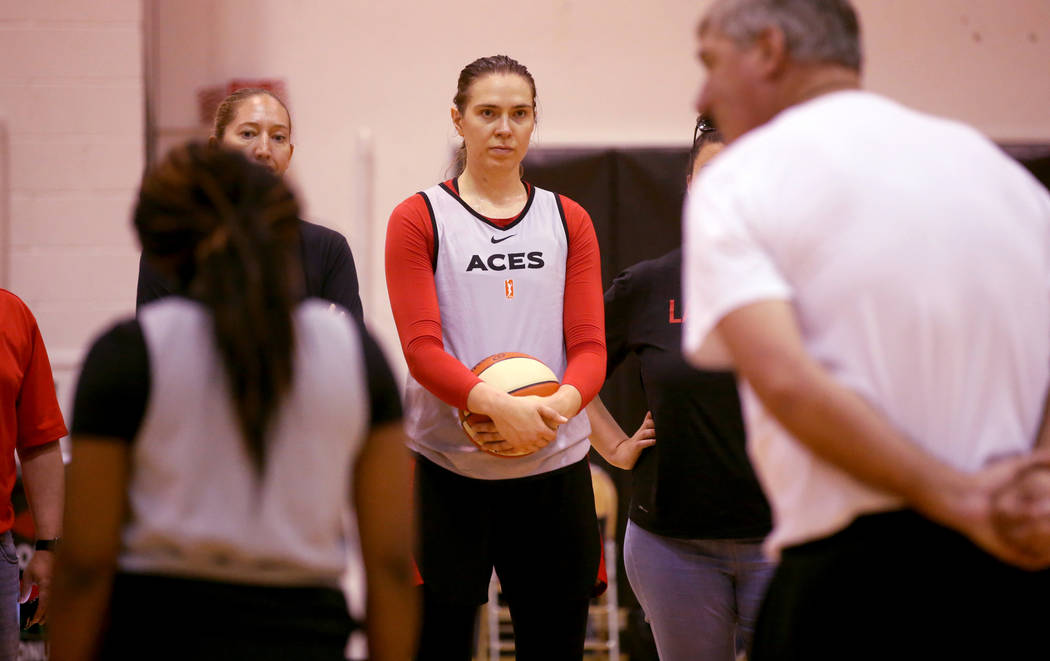 “You can’t teach size, and she’s got it,” Aces coach Bill Laimbeer said. “She’s more skilled than I thought she was coming in. She has her moments when she makes some mistakes, but overall she’s trying very hard. … This is a competitive camp, and she’ll have to keep pushing.”