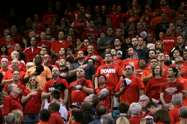 The Wildcats, who have been flirting with one of the four No. 1 seeds that will be handed out today for the NCAA Tournament, haven’t made a public issue over their validity as being top-seed worthy. Instead, they put all of their energy and concentration into beating Oregon 80-52 and winning the Pacific 12 Conference Tournament championship Saturday night before a sellout crowd of 12,916 at the MGM Grand Garden.