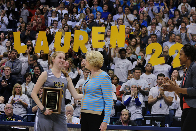 Both shots were greeted with standing ovations from the sellout crowd at Xavier University’s 10,000-seat arena, part of an emotional afternoon for Hill that included love and support from stars in several sports. Tennessee women’s coach Pat Summitt was in attendance, along with an impressive list of WNBA players that included Elena Delle Donne, Delisha Milton-Jones, Tamika Catchings and Skylar Diggins.