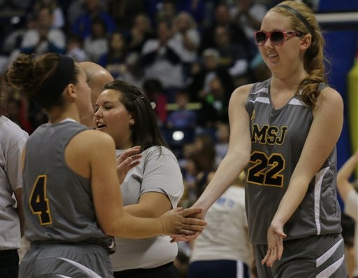 Hill’s condition has made her extremely sensitive to sensations her teammates and opposing players take for granted, but she still enjoyed the bright gym and the cheering crowd. And she certainly savored her two baskets on a day she will never forget.