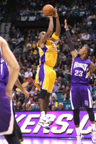 The 37-year-old Bryant played 18 minutes and scored 10 points before leaving the game in the third quarter with a contusion to his left calf, and the Lakers fell to 1-4 in the preseason with a 107-100 loss to the Sacramento Kings in front of 11,618.