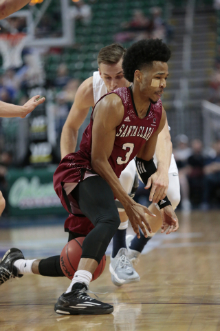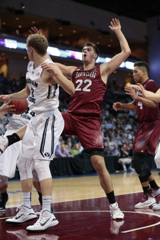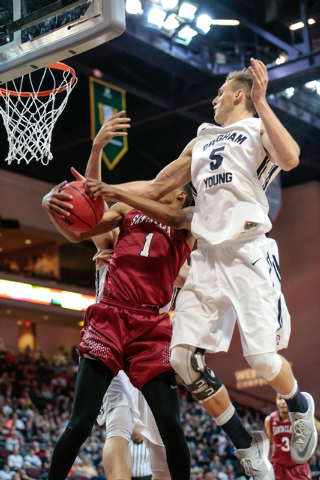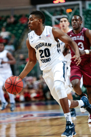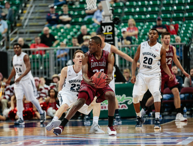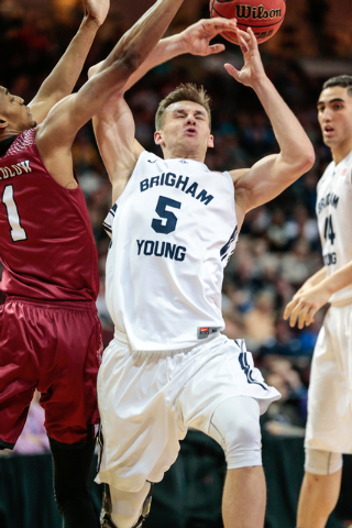 The ball swished with 2.5 seconds remaining to lift the Cougars to a 78-76 win over Santa Clara at Orleans Arena on Saturday night, sending BYU (24-8) into a semifinal against Portland (17-14) at 8:30 p.m. today on ESPN2 (Cox 31).