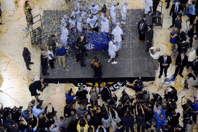 The finals pitted the top two seeds in Kentucky and Arkansas, but the Wildcats wasted little time proving that winning the regular season by five games was no fluke. Kentucky roared out to an 8-0 lead within the first two minutes, forcing Arkansas coach Mike Anderson to call an early timeout. Point guard Andrew Harrison scored six of the eight on a pair of three-pointers.