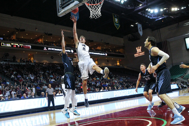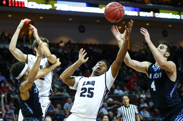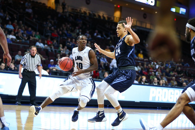 The West Coast Conference began men’s tournament play Friday at Orleans Arena, and after the last bricked shot had been tossed up and the last turnover had been committed, eighth-seeded Loyola Marymount had held off a late charge by No. 9 San Diego to win 64-61.