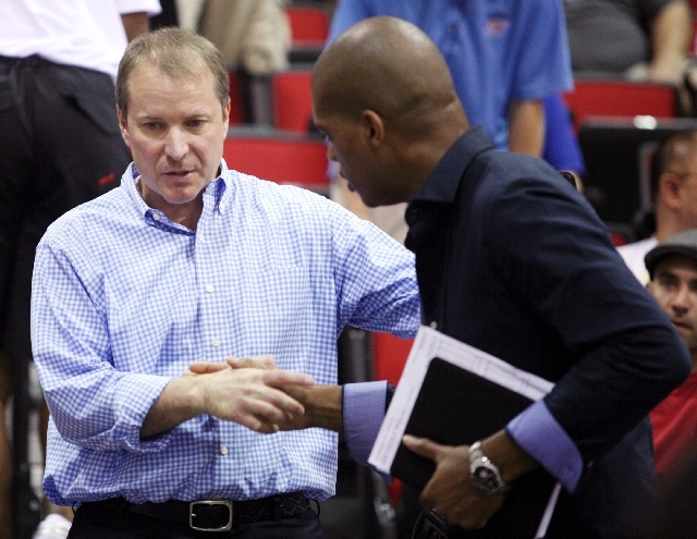 “We’re definitely on the right track,” Sheppard, former sports information director at UNLV, said while in town to watch his team compete in the NBA Summer League. “Our season ticket renewals are up. There’s great anticipation on the part of our fans. We’re bringing in excellent players with strong character. We had some success during the second half of the season. So we’re very excited about our future.”