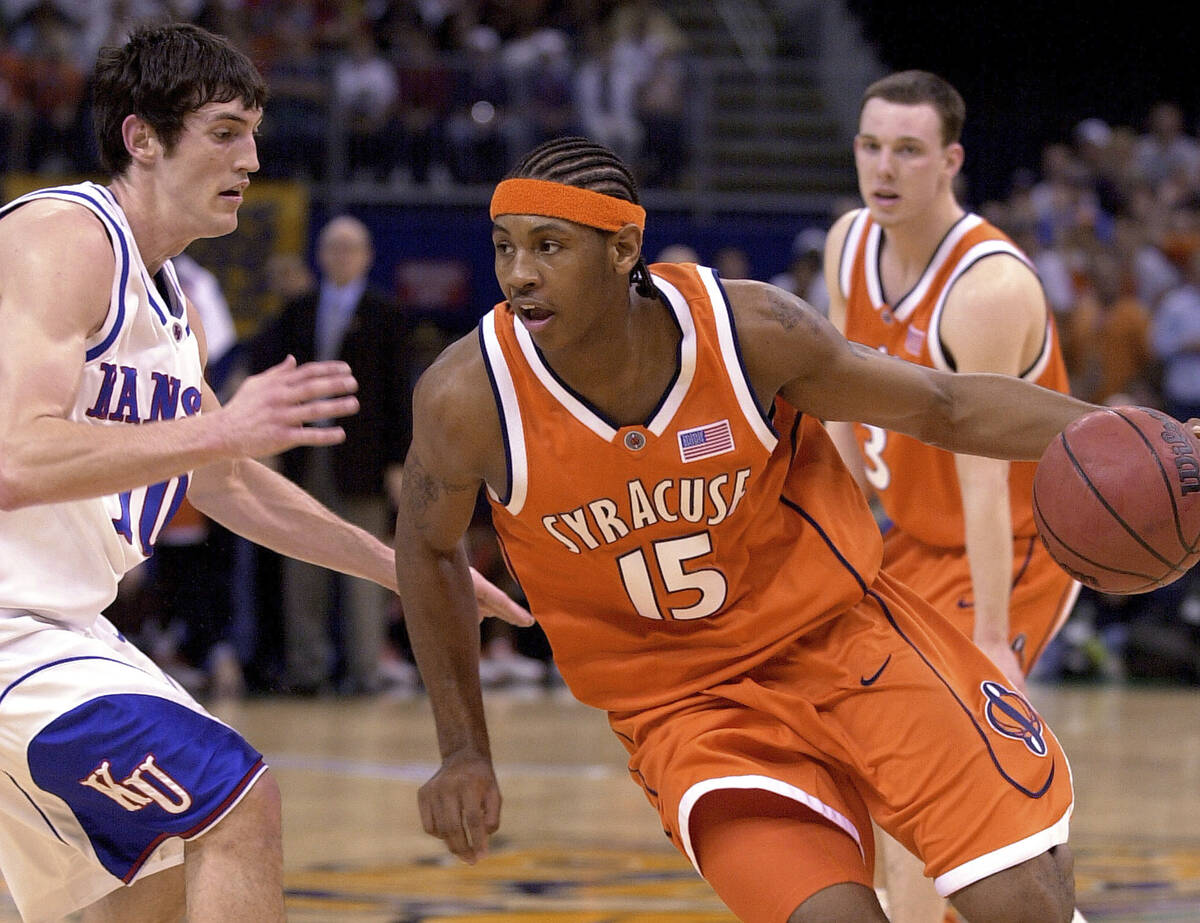 3. Carmelo Anthony (Syracuse): He was fantastic in both Final Four games in 2003, totaling 33 points and 14 rebounds in a semifinal victory against Texas and 20 points, 10 rebounds and seven assists in the title game win against Kansas.