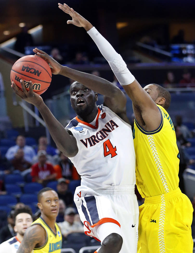 Virginia guard Marial Shayok (4) goes up for a shot against UNC Wilmington guard Chris Flemmings during the first half of a first-round men’s college basketball game in the NCAA Tournament, Thursday, March 16, 2017, in Orlando, Fla. (Wilfredo Lee/AP)