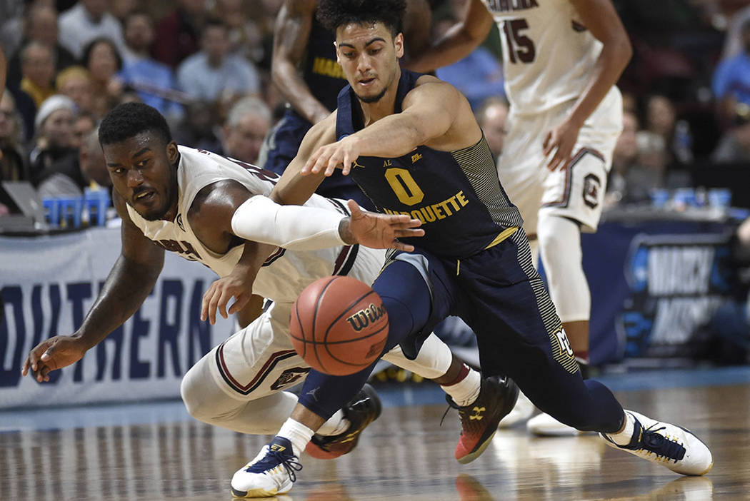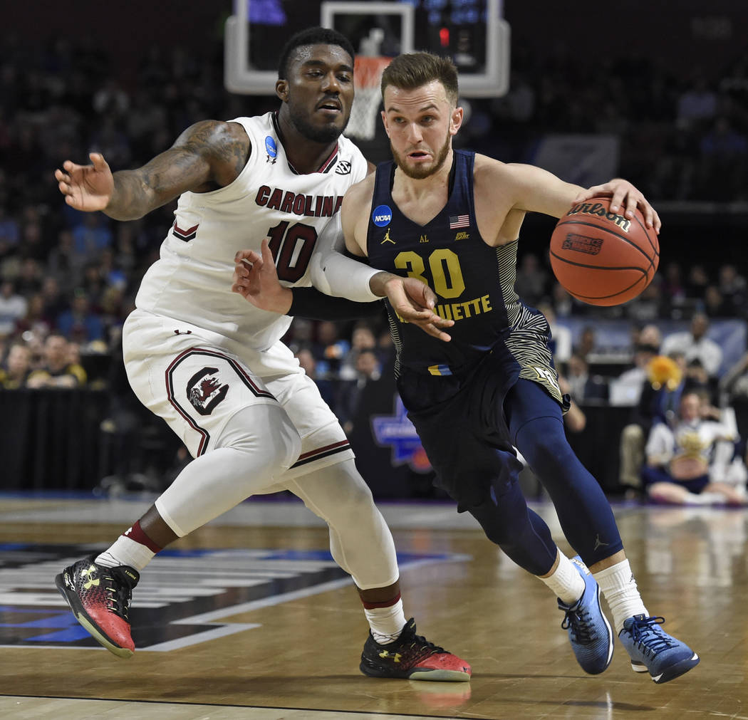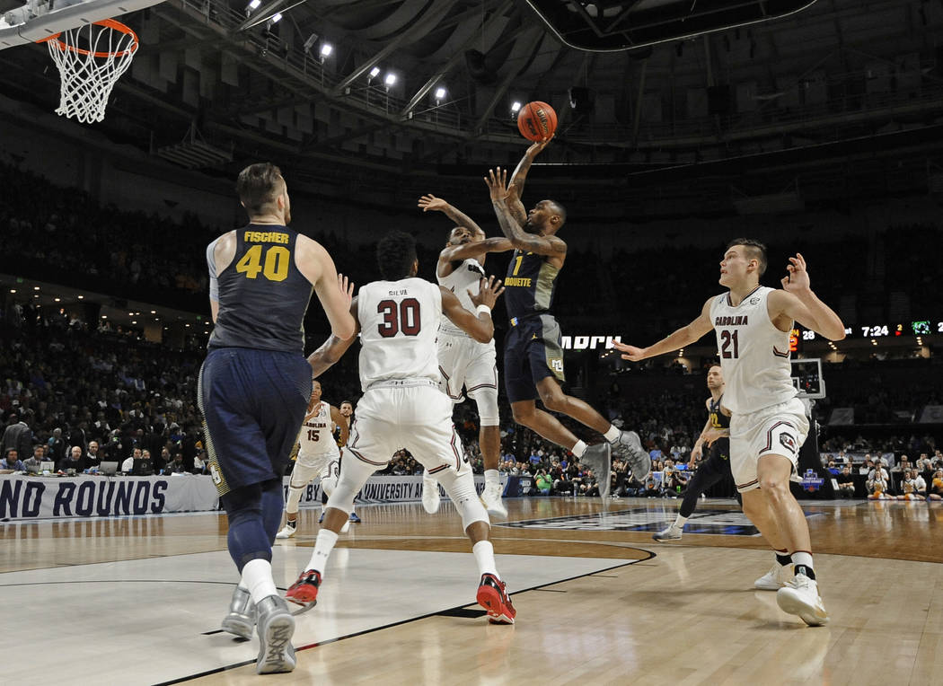Marquette came out firing — Rowsey opened the game with a four-point play — and moved in front 26-16. South Carolina, though, cut things to 40-39 at the half on Maik Kotsar’s layup with 42 seconds left.