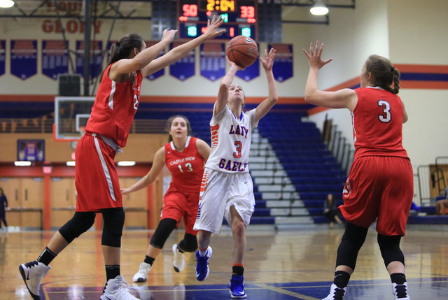 Castle View’s starting post players stand 6 feet, 3 inches and 6-1 but were rendered ineffective by the Gaels’ active defense. Gorman held the Sabercats to 31 percent shooting from the field and outrebounded the visitors 33-27.