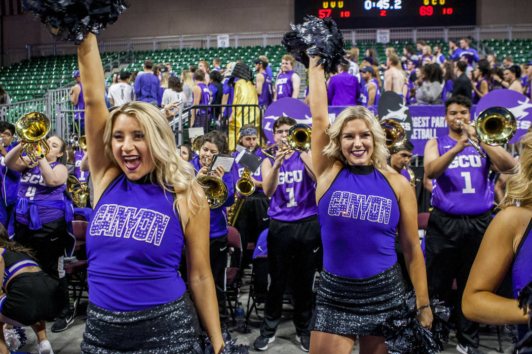 Grand Canyon cheerleaders and the band help set the tone during the second half a WAC semifinal game at the Orleans Arena in Las Vegas on Friday, March 9, 2018. Grand Canyon won 75-60. Patrick Connolly Las Vegas Review-Journal @PConnPie