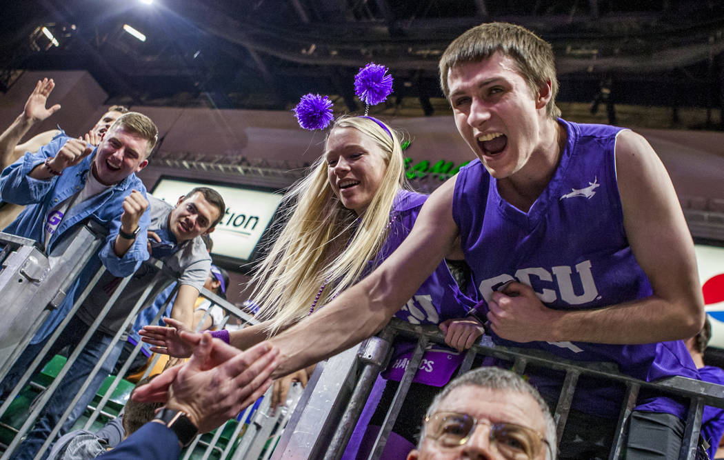 Grand Canyon Antelopes fans give high-fives to players and coaches after the team beat Utah Valley 75-60 in a WAC semifinal game at the Orleans Arena in Las Vegas on Friday, March 9, 2018. Patrick Connolly Las Vegas Review-Journal @PConnPie