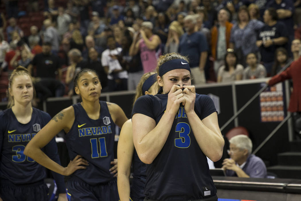 Nevada Wolf Pack forward Teige Zeller (3) after her team's loss against Boise State Broncos in the Mountain West Conference women's basketball tournament championship game at the Thomas & Mack Center in Las Vegas, Friday, March 9, 2018. Boise State won 62-60. Erik Verduzco Las Vegas Review-Journal @Erik_Verduzco